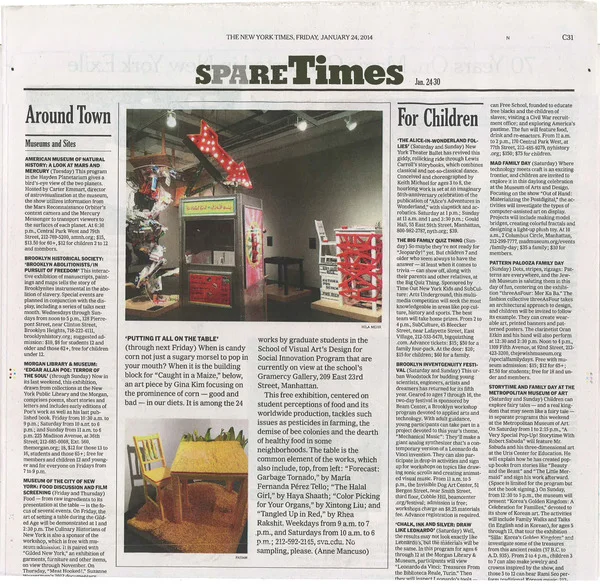 The New York Times featured Design for Social Innovation's art exhibition, Putting it All on the Table, as a must-see show.